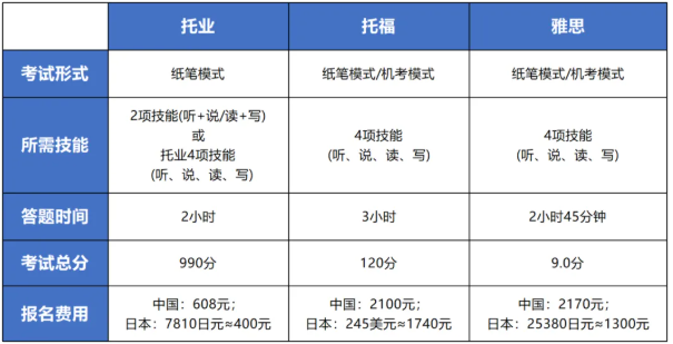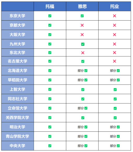 在日本,托福>托业≥雅思。可以说只要是硬性要求必须提交英语成绩的学校,都是会认可托福的。其次是托业和雅思成绩,虽然没有托福的认可度高,但近几年也逐渐被越来越多的院校承认。